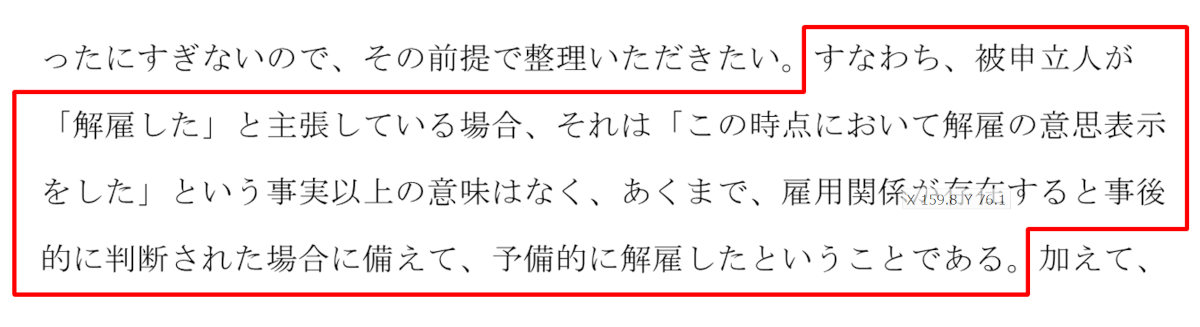 雇用関係があるかないかわからないが、雇用関係があるとなったら困るので、あらかじめ解雇しておいたと主張しているようです。